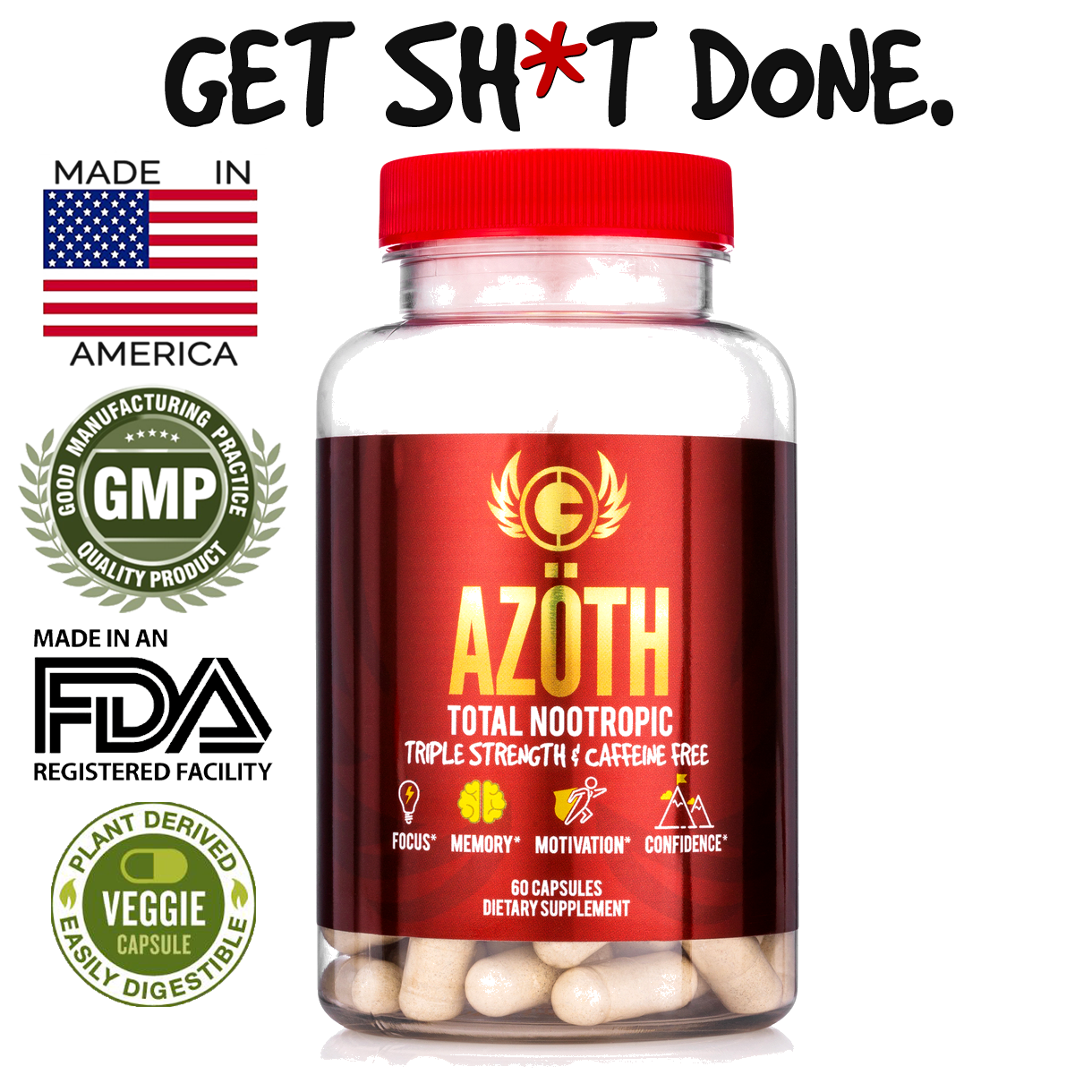 productivity formula, designed to increase levels of sustained motivation, energy, mood, and confidence that doesn’t just last for thirty minutes, but lasts the WHOLE day. Better yet, AZOTH 2.0